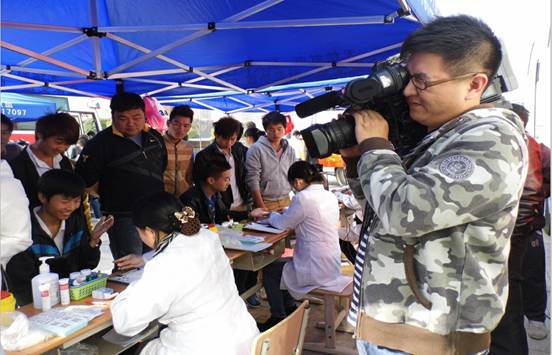 學(xué)生在驗血,江西電視臺記者在現(xiàn)場報道