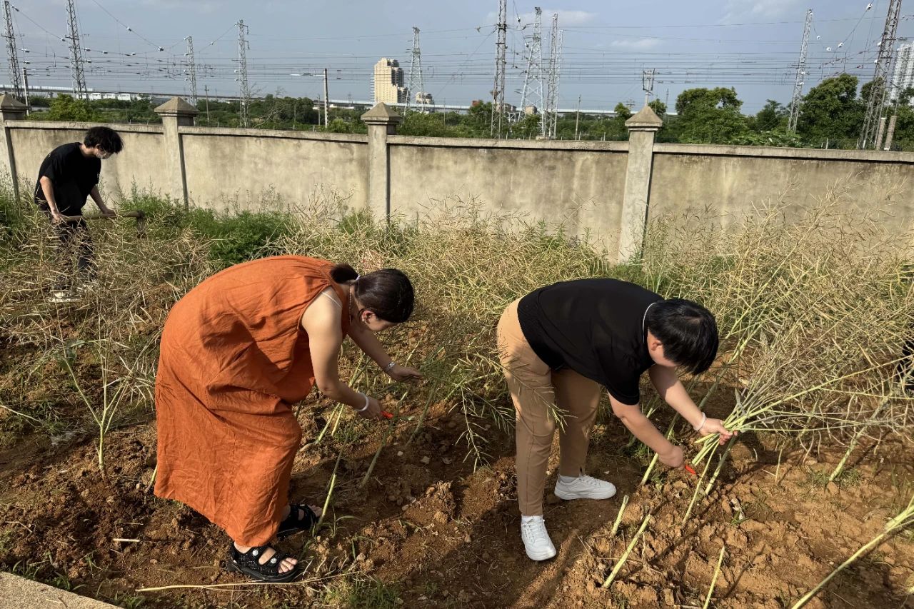 活動(dòng)現(xiàn)場(chǎng),校領(lǐng)導(dǎo)、老師躬親示范農(nóng)耕技巧,學(xué)生們跟隨學(xué)習(xí)收割油菜。師生共同參與田間勞作、學(xué)習(xí)勞動(dòng)知識(shí)、大家分工協(xié)作,收割聲此起彼伏,在金燦燦的油菜田中感受勞動(dòng)成果之美,用汗水與歡笑書(shū)寫(xiě)夏日里的勞動(dòng)篇章。