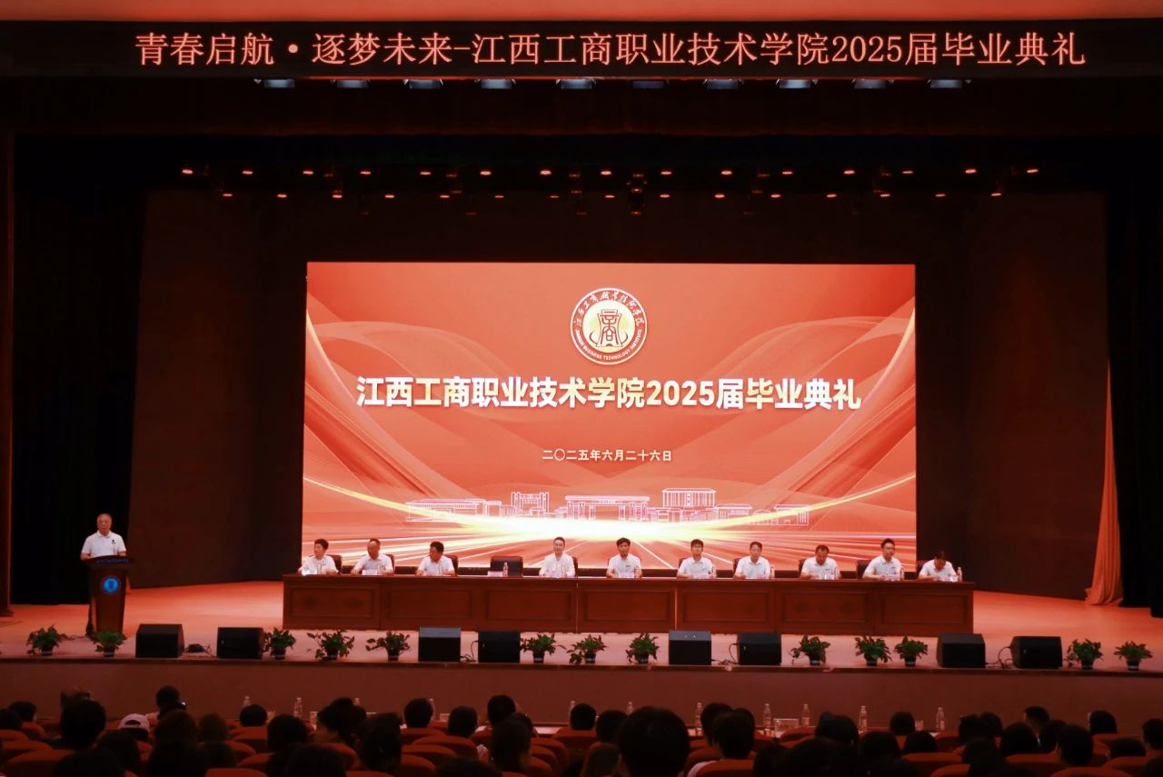 6月26日上午,我校2025屆畢業(yè)生畢業(yè)典禮在學術報告廳舉行。校黨委書記、督導專員應露晨,黨委委員、行政負責人李盛艷,黨委副書記吳鵬程,黨委委員、副校長胡志鵬等在家校領導出席典禮并為畢業(yè)生代表頒發(fā)畢業(yè)證書、佩戴校友校徽。各部門、分院負責人,師生代表、學生家長代表、2025屆畢業(yè)生代表共計1000余人參加典禮。