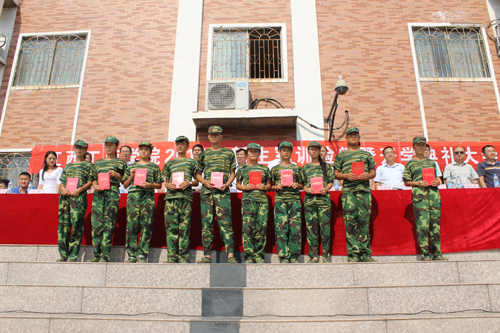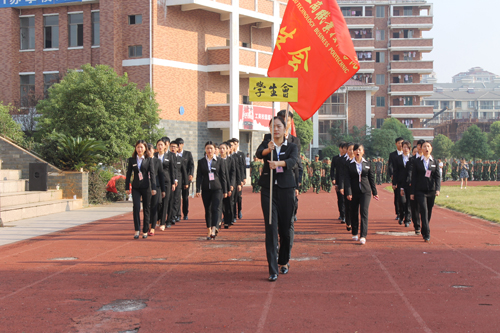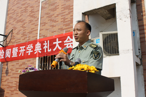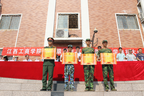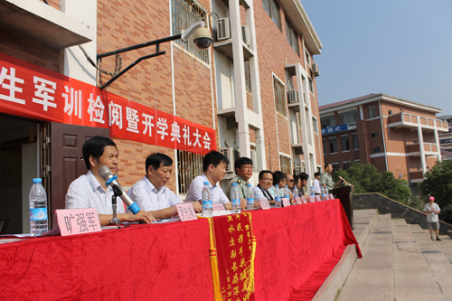在閱兵式上省人民武裝學(xué)院江濤總隊(duì)長代表軍訓(xùn)教官發(fā)言,學(xué)院人民武裝部部長周圣華同志作了軍訓(xùn)總結(jié),學(xué)工處處長周艷萍宣讀了表彰決定。黨委書記劉富林代表學(xué)院向教官隊(duì)伍贈送了錦旗,向受表彰的優(yōu)秀中隊(duì)、學(xué)員頒發(fā)了證書。