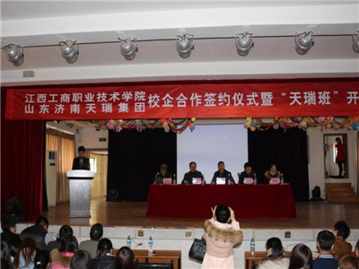 為了進(jìn)一步貫徹落實(shí)我院“321辦學(xué)模式”,推動我院教育教學(xué)改革,提升學(xué)生就業(yè)平臺,經(jīng)學(xué)院研究,決定與山東濟(jì)南天瑞集團(tuán)進(jìn)行校企合作,并成立江西工商職業(yè)技術(shù)學(xué)院“天瑞”訂單班。