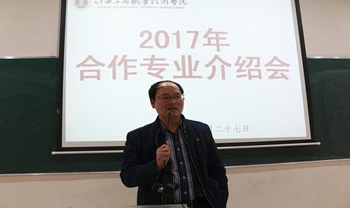 為進(jìn)一步推進(jìn)學(xué)校合作辦學(xué)工作力度,4月26日下午,我院在南一棟教學(xué)樓多媒體教室舉行國內(nèi)外合作辦學(xué)項(xiàng)目推介會。會議由曠強(qiáng)軍副院長主持,院長劉明初、副院長胡國輝出席會議,教務(wù)處、招就處、經(jīng)管系、教科系、建工系、機(jī)電系、護(hù)理系等部門負(fù)責(zé)人及相關(guān)合作辦學(xué)的班主任、任課教師等參加了會議。