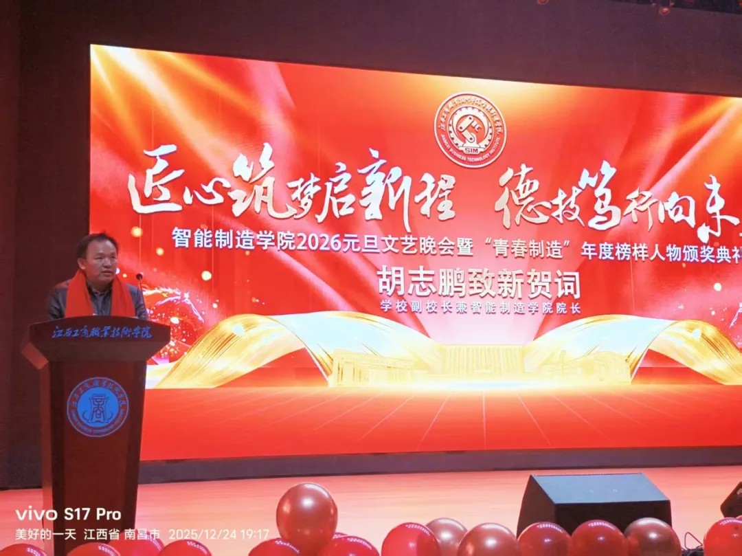 昨夜星光燦爛,今宵掌聲不息。12月24日晚,智能制造學(xué)院“跨越新元,奔赴新愿”2026元旦文藝晚會暨青春智能制造年度榜樣人物頒獎典禮在學(xué)校大禮堂隆重舉行。師生歡聚一堂,共迎新年,見證榮耀,放飛夢想。