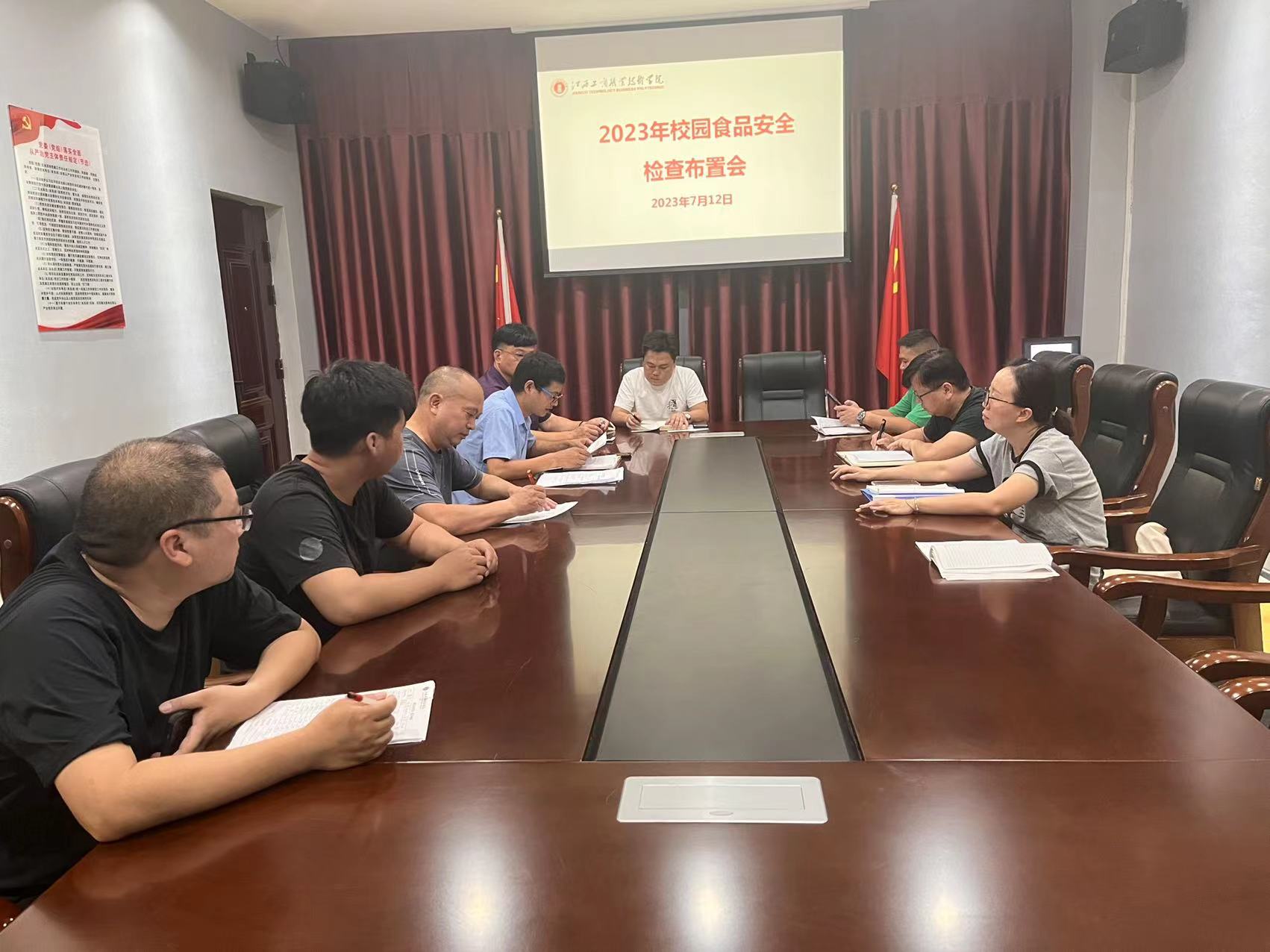 為切實加強校園食品安全,及時消除食品安全隱患,確保學(xué)校廣大師生飲食安全,根據(jù)江西省教育廳《關(guān)于開展校園食品安全檢查工作的通知》《江西省教育廳 江西省市場監(jiān)督局關(guān)于開展全省校園食品安全專項排查整治的通知》要求,7月12日上午,在學(xué)校黨委會議室召開2023年校園食品安全檢查布置工作會議。會議由校長助理胡鵬飛主持。