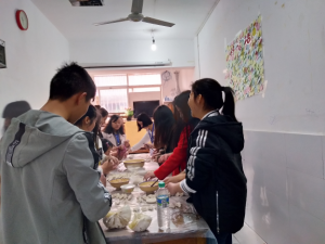 到達三聯(lián)學校時,我們給聾啞學生發(fā)放了一些小玩意和糖果,并與他們用一些簡單的手語進行交流,甚至有的同學還拿出了本子和筆跟他們進行交流,表達了對聾啞學生極大的關愛。期間,我們還與聾啞學生一起跳繩,打羽毛球,下棋,打乒乓球,并且還為他們包了餃子。臨走時,我們與聾啞學生留影合念,希望可以用相機留住這個美麗的瞬間。